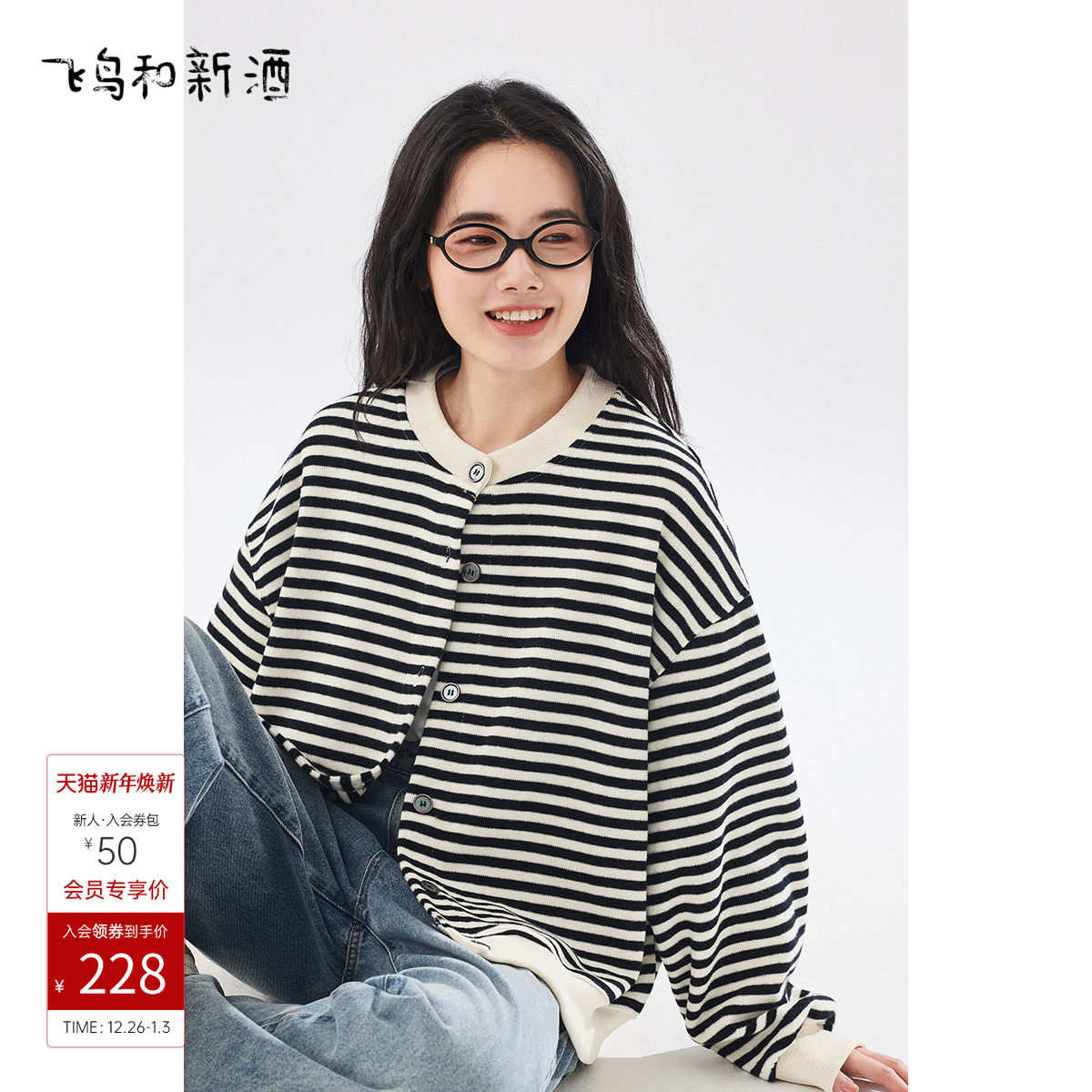 飞鸟和新酒2025秋条纹短款外套女女装新款宽松薄款无帽圆领短卫衣
