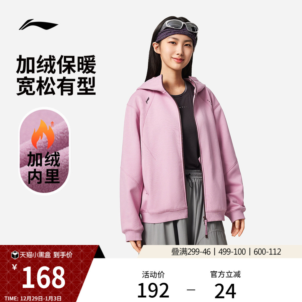 鸿星尔克外套女冬季新款女士修身加绒卫衣针织夹克运动服女装女款