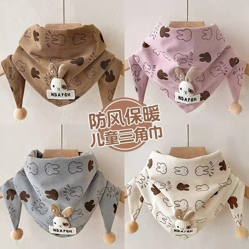 宝宝围巾秋冬季韩版婴儿小兔子三角巾春秋天男童女孩保暖防风围脖