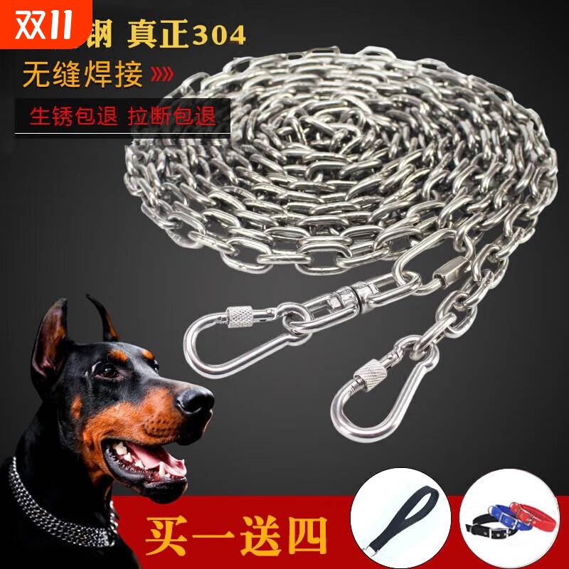 304不锈钢狗链子大型犬中型犬小型犬狗铁链项圈狗绳防咬栓狗链铁