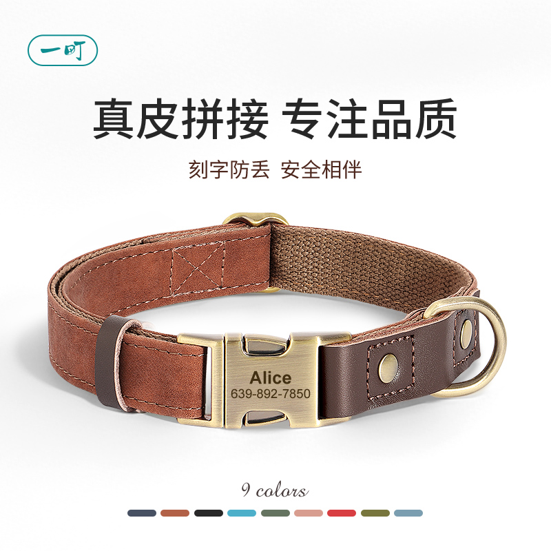 宠物狗狗项圈泰迪小型犬颈圈中型犬柯基刻字防丢狗牌牵引绳狗脖圈