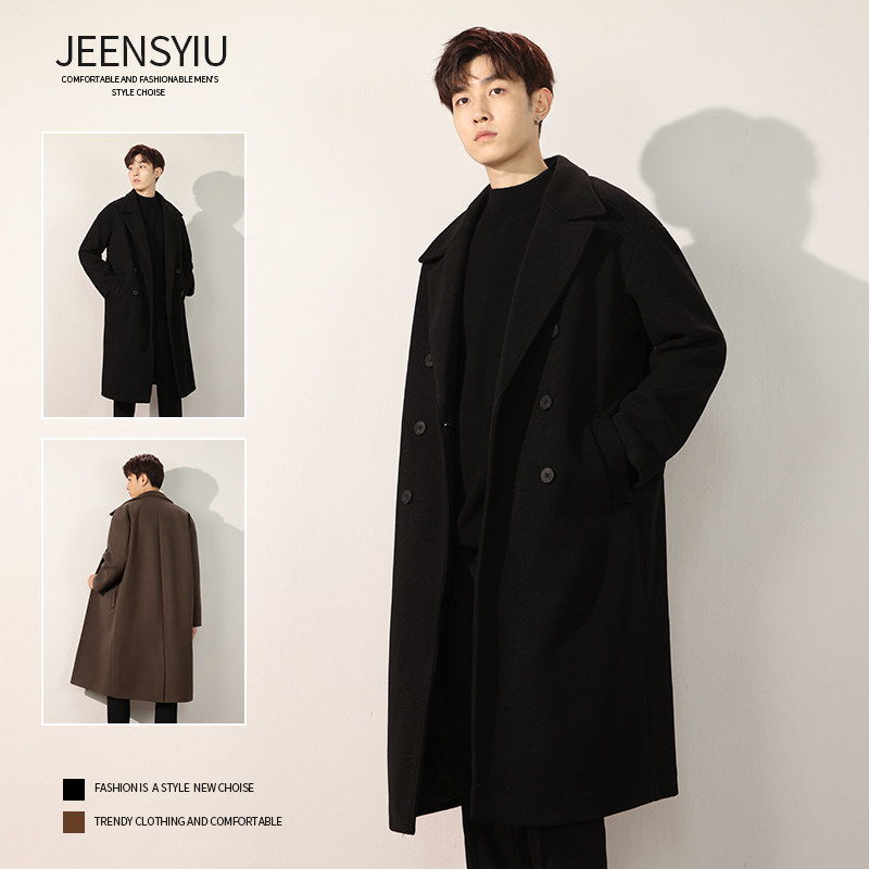 冬季毛呢大衣男中长款过膝西装领双排扣呢子风衣外套加厚ins潮流