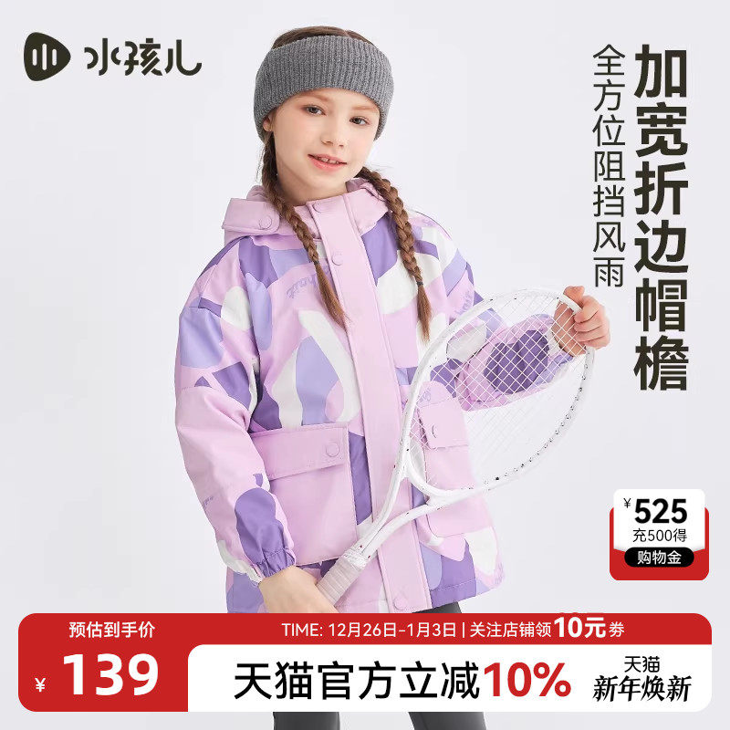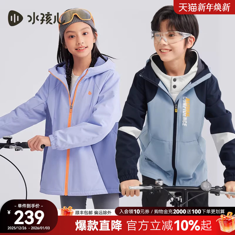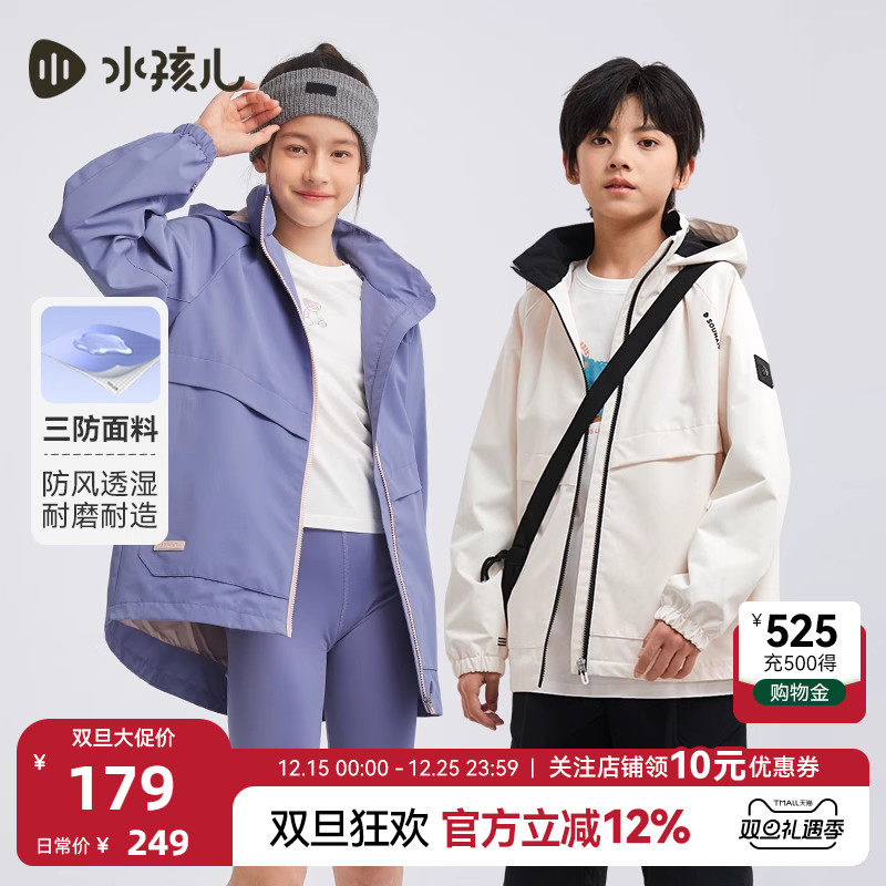 水孩儿儿童外套女童春秋装新品中大童三防风衣男童薄绒透湿连帽衫