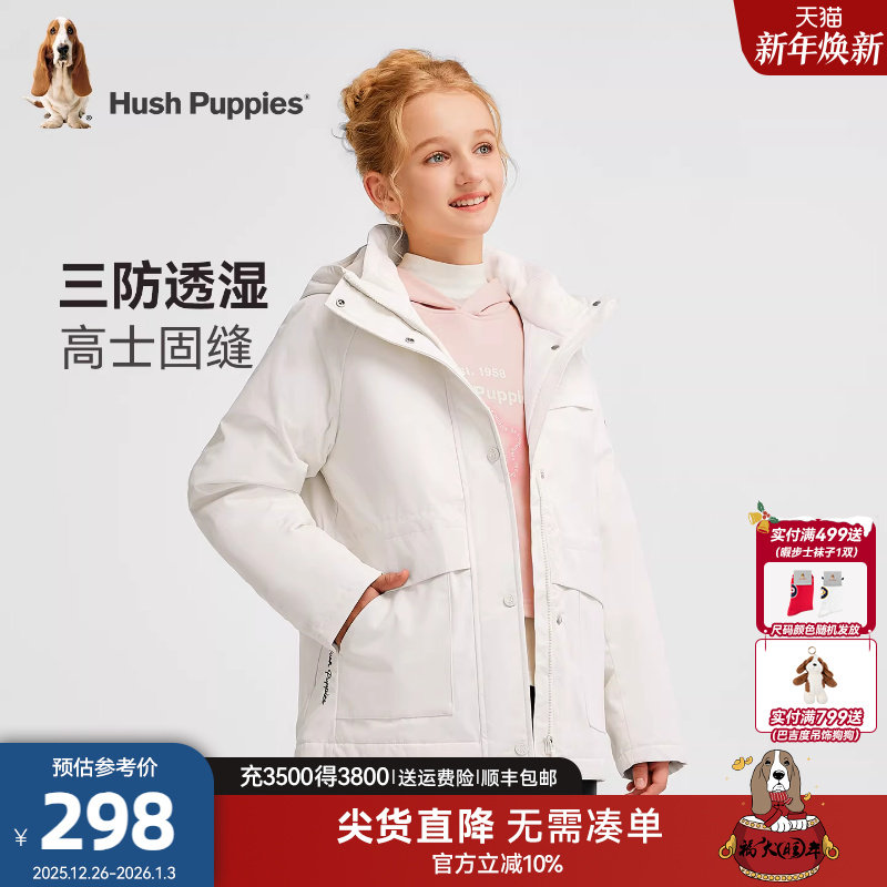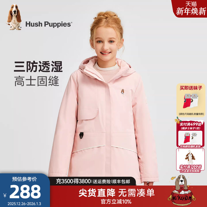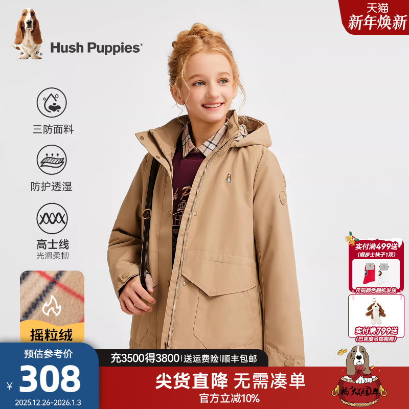 暇步士童装女童三防厚风衣25秋冬新品中大童休闲儿童连帽加绒外套