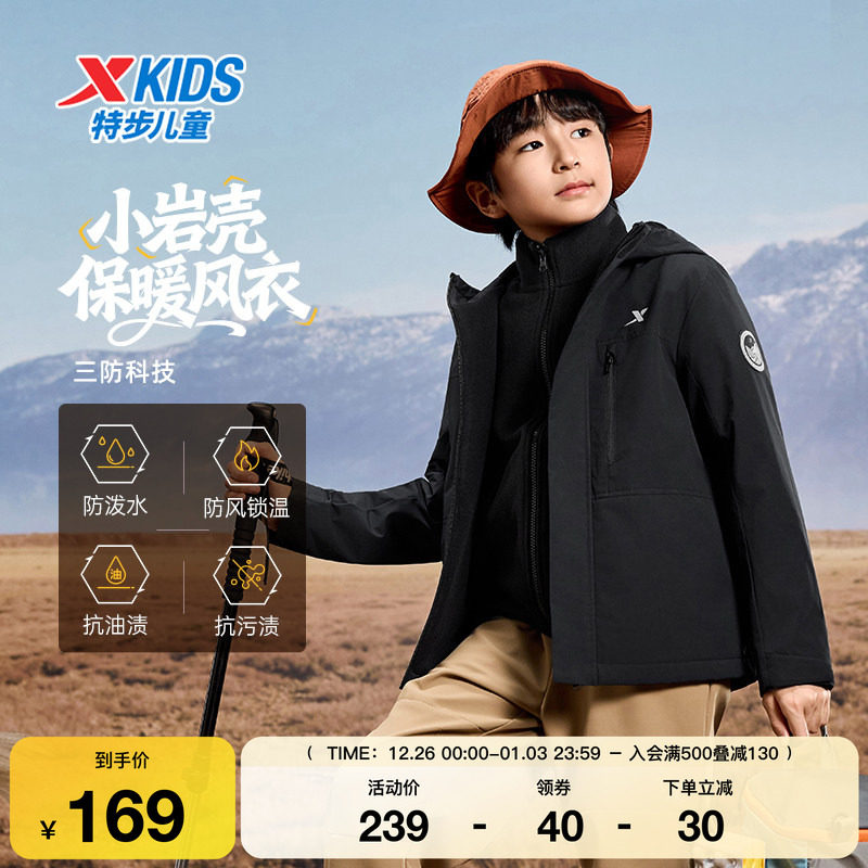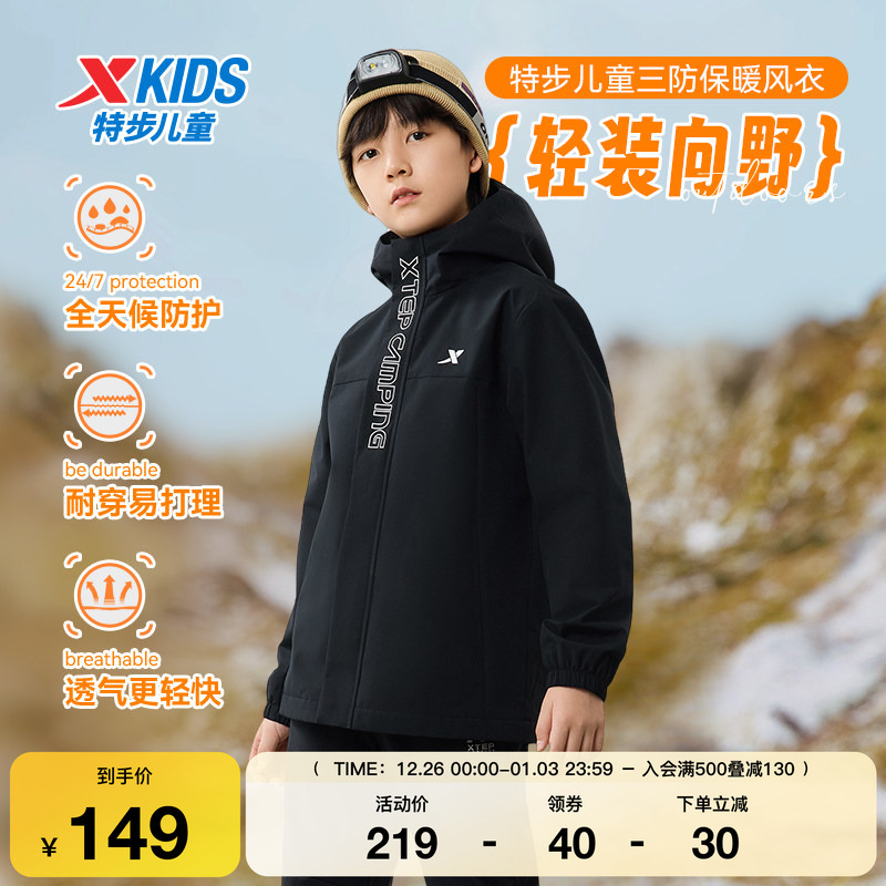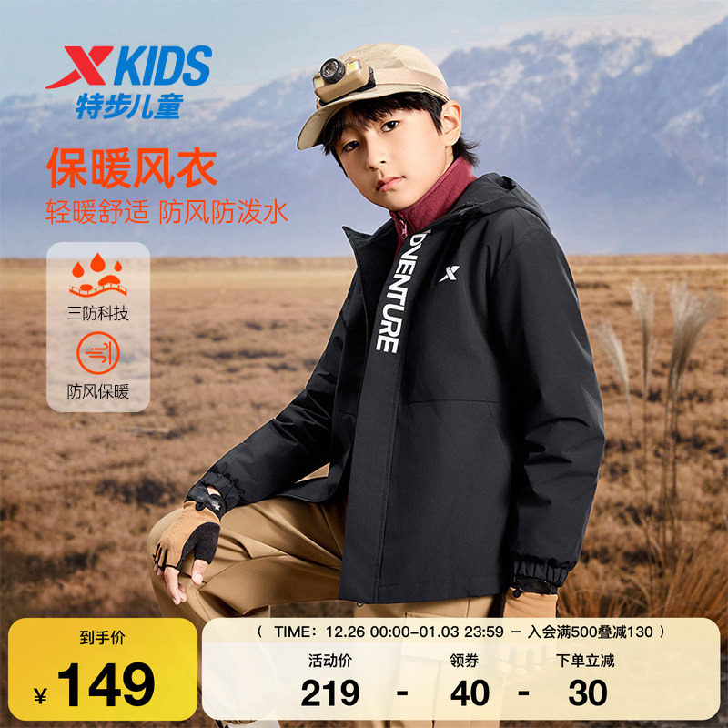 特步童装儿童户外套秋冬季新款男女童运动休闲中大童三防风衣保暖