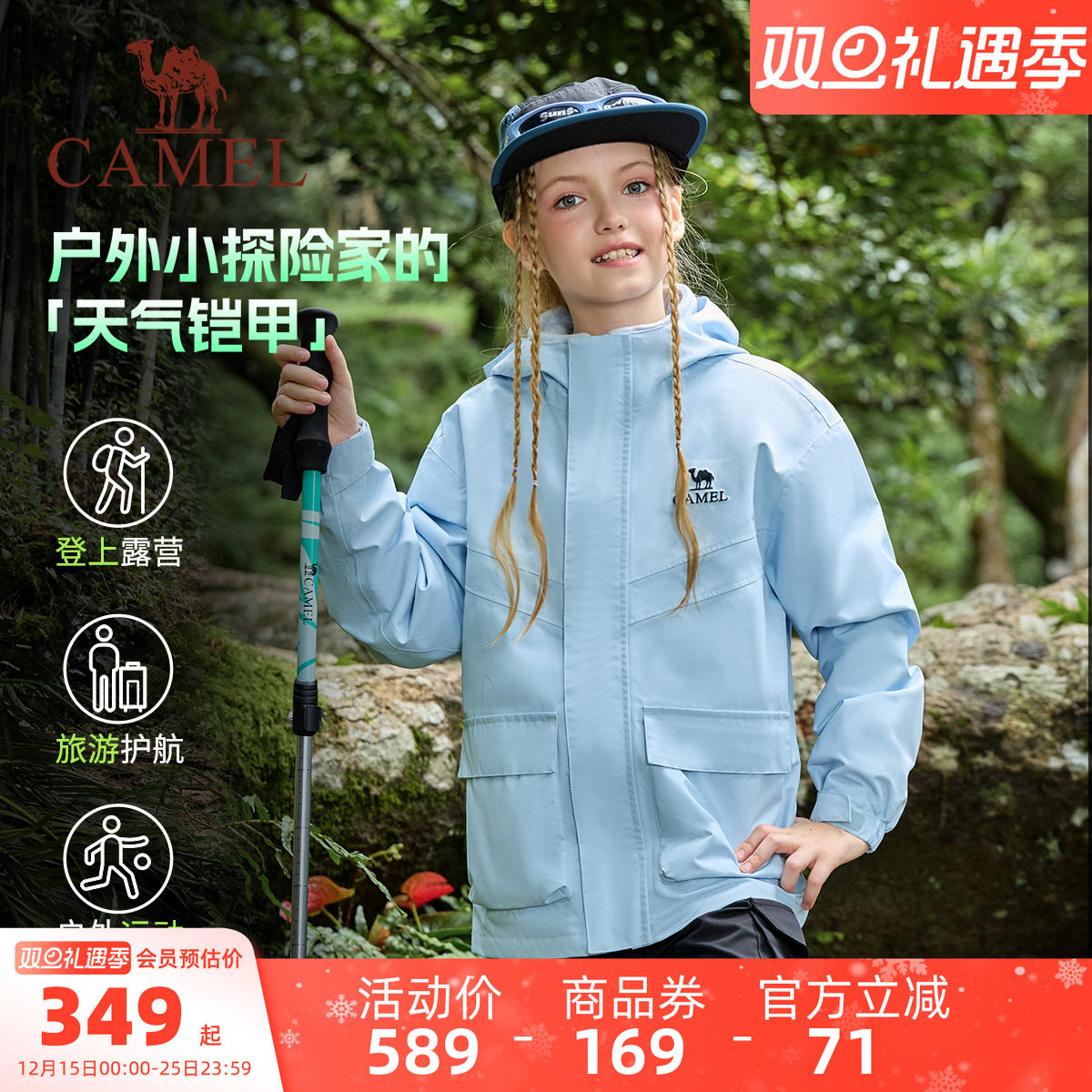 【断码特卖】骆驼儿童冲锋衣三合一中大童户外防水风衣男女童外套