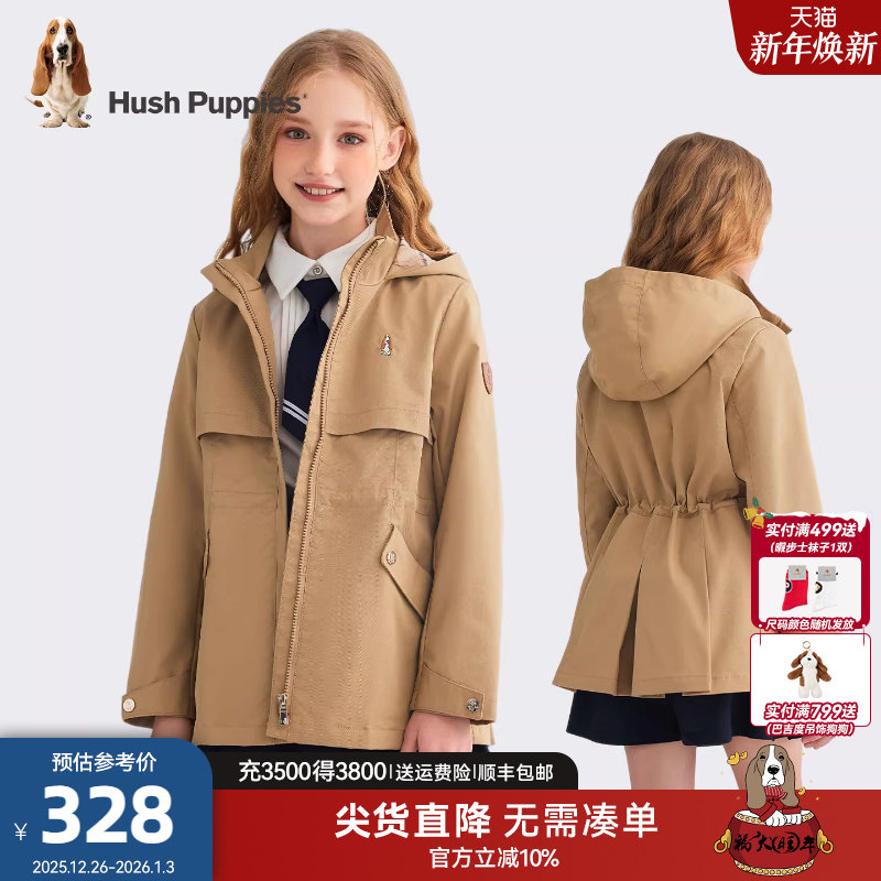 暇步士童装女童三防外套2025秋季新款中大童休闲连帽儿童户外风衣
