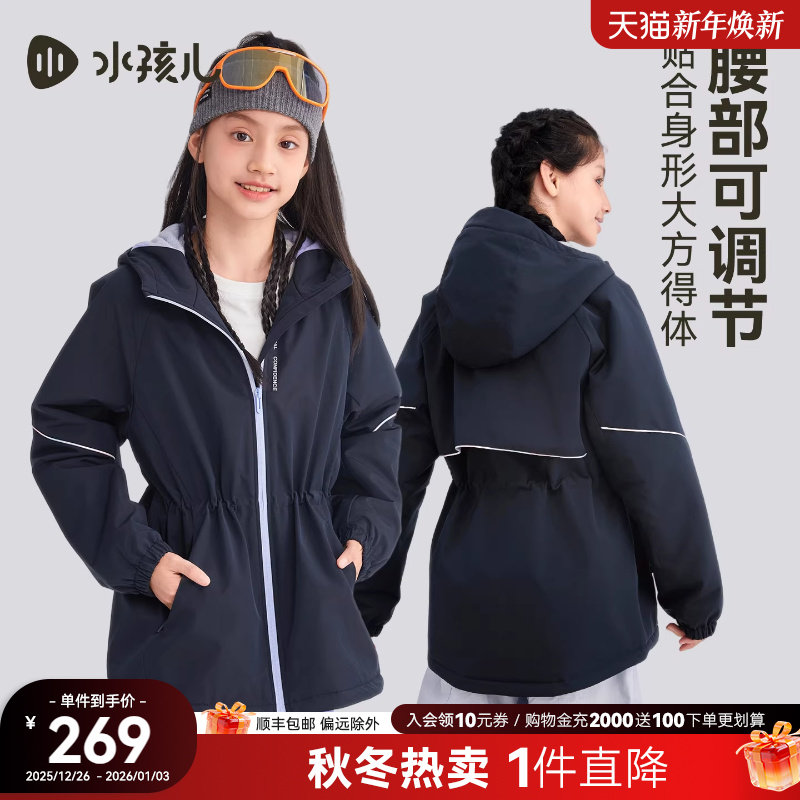 水孩儿女童外套加绒25春秋冬新品中大童冲锋上衣洋气三防厚风衣