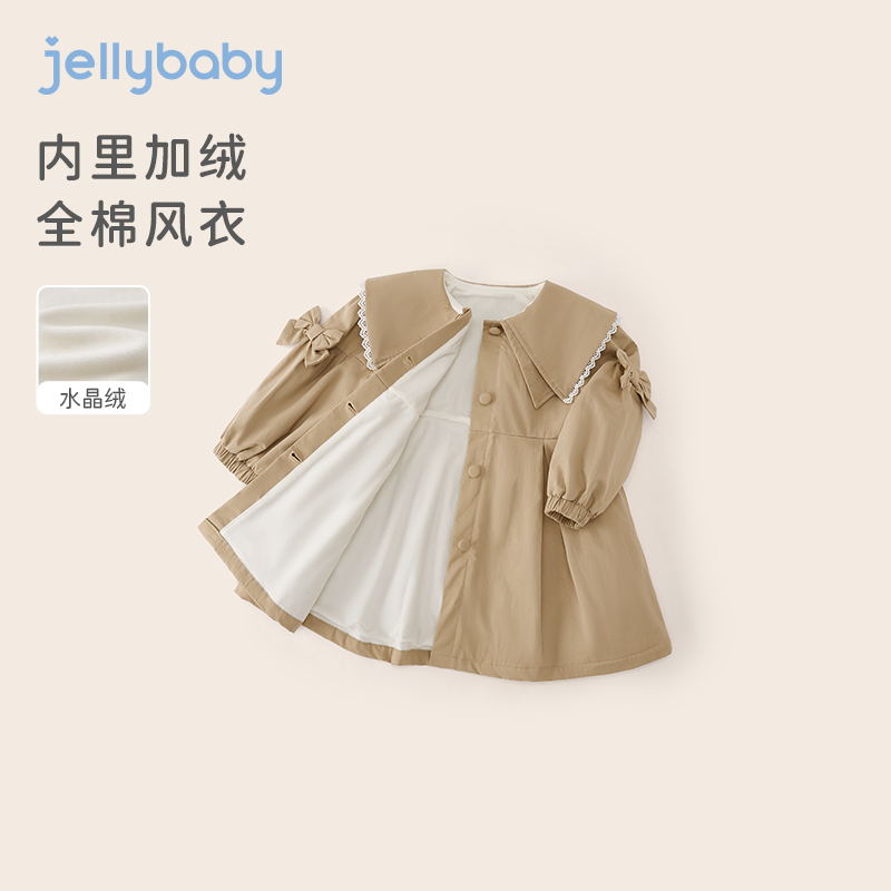 jellybaby 中大童毛绒外套秋冬儿童加绒加厚风衣女童抗菌冬装保暖