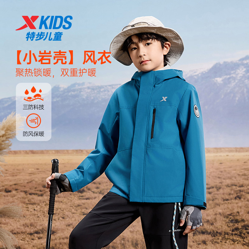 特步童装秋季款男童女童中大童三防科技运动休闲保暖风衣透气外套