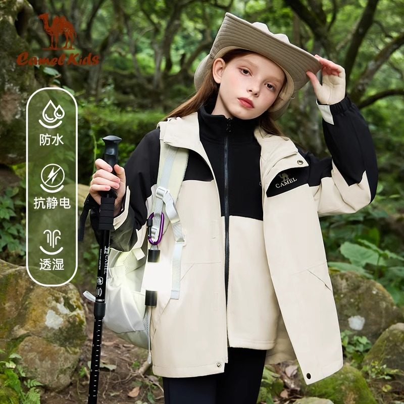 骆驼儿童冲锋衣三合一新款中大童户外防水风衣女童外套男童滑雪服