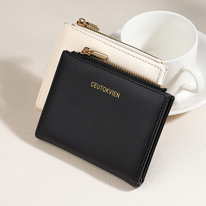 - 牛皮短款钱包女