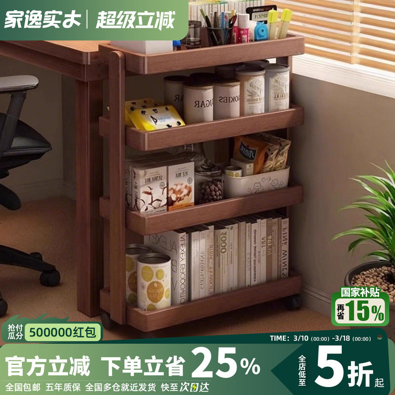 家逸实木书架多层缝隙收纳架家用落地置物架客厅小推车书桌边架子