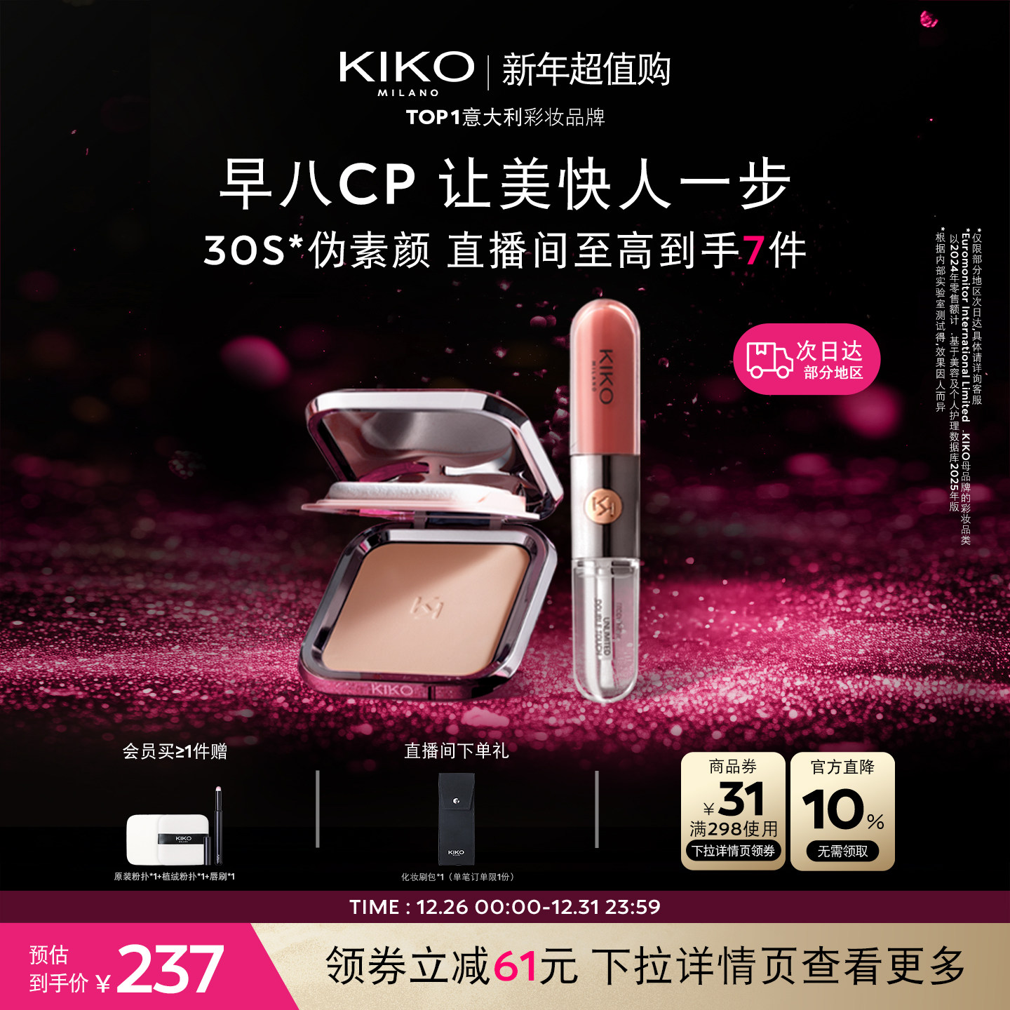 【早八CP】意大利KIKO粉饼定妆干湿两用+双头唇釉口红唇蜜套组