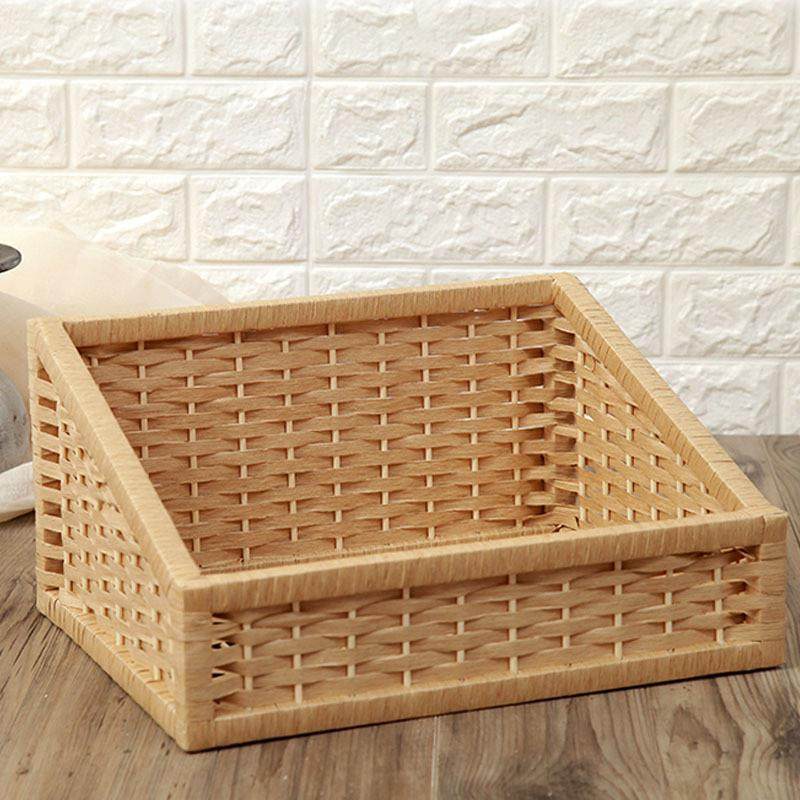 ins复古藤编桌面收纳盒长方形化妆品整理盒茶几杂物置物篮收纳筐