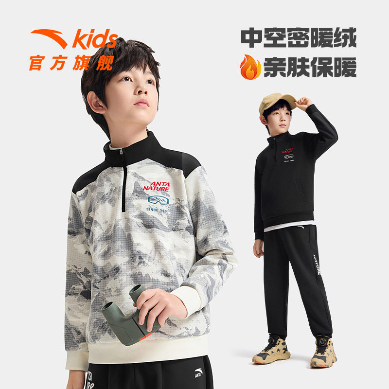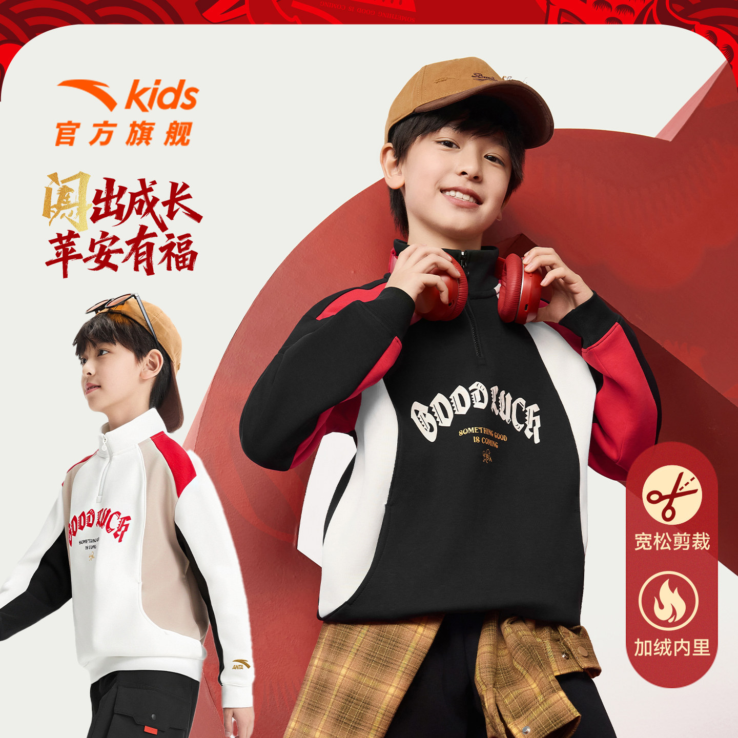 安踏儿童男童卫衣套头衫2025冬款上新舒适保暖中国冰雪加绒卫衣潮