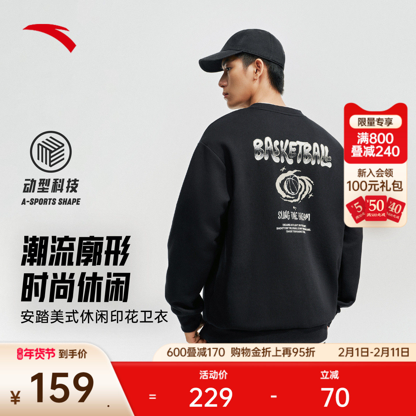 安踏潮流美式套头运动卫衣男女2026新款印花休闲情侣圆领长袖上衣