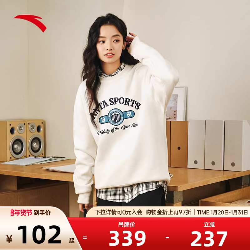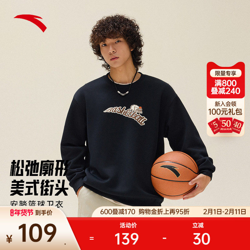 安踏潮流美式运动卫衣男女冬季新款宽松圆领长袖套头衫运动服上衣