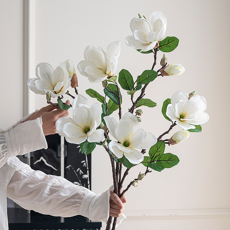 米子家居玉兰花假花客厅仿真花摆件花束装饰花卉餐桌插花摆设高档