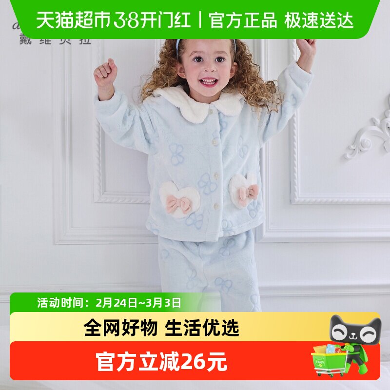 戴维贝拉女童家居服套装儿童珊瑚绒睡衣2026冬装新款宝宝A类秋衣
