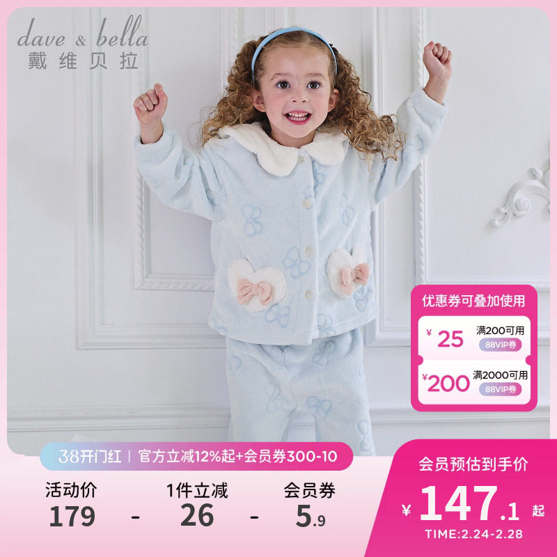 戴维贝拉女童家居服套装儿童珊瑚绒睡衣2026冬季新款居家宝宝A类