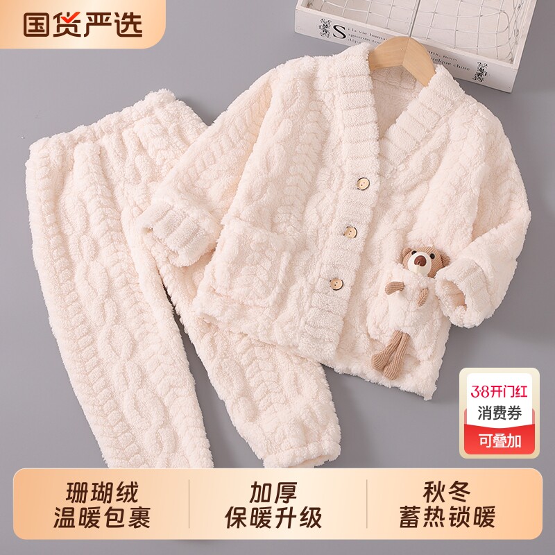 秋冬季儿童珊瑚绒睡衣女童宝宝套装男童加厚冬款法兰绒女孩家居服