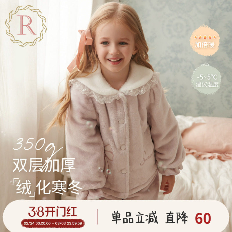 RoseTree儿童珊瑚绒睡衣女童双层加厚冬女孩宝宝法兰绒家居服套装