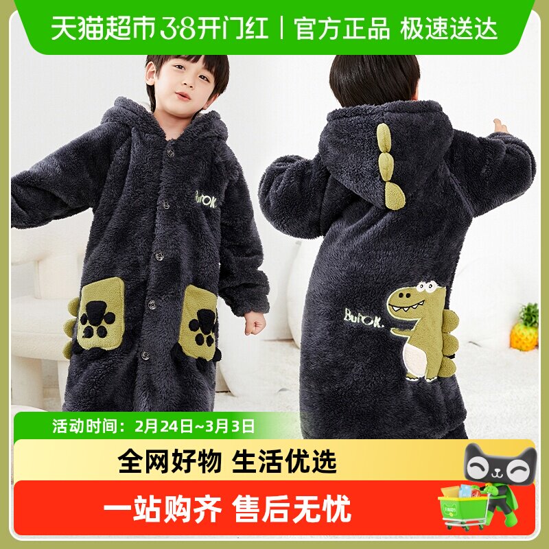 2024儿童珊瑚绒睡衣男童秋冬季家居服男孩法兰绒睡袍秋款加绒秋款