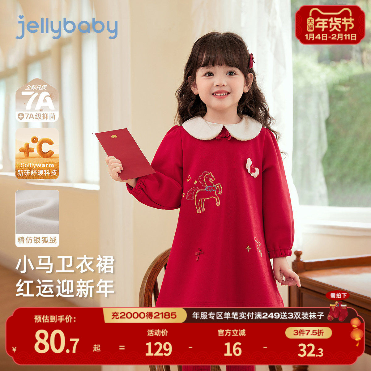 [抑菌]女童连衣裙秋冬女宝宝薄绒公主裙女孩秋装纱裙儿童红色裙子