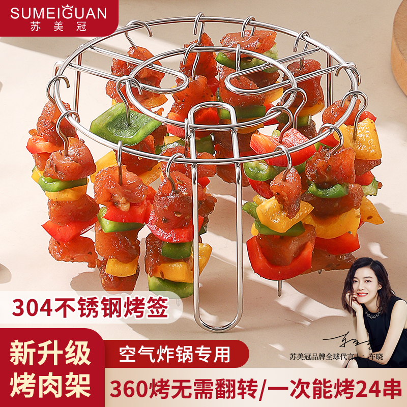 空气炸锅烤串架圆形烤架立式烤箱吊炉架免翻面烤肉串签304不锈钢