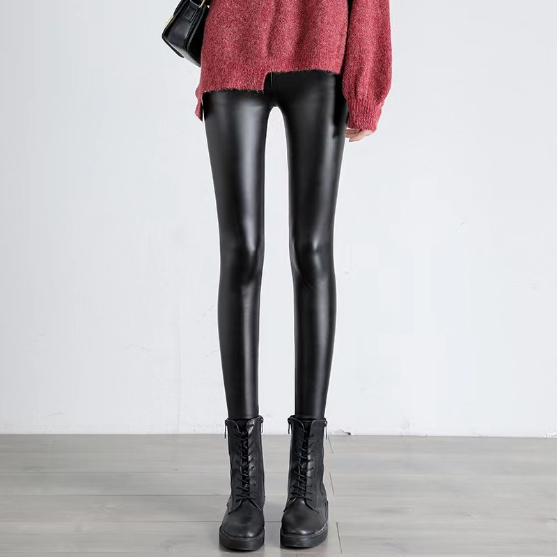 2025秋冬新款PU哑光皮裤女高腰弹力修身外穿打底裤加绒紧身长裤子