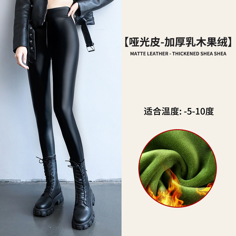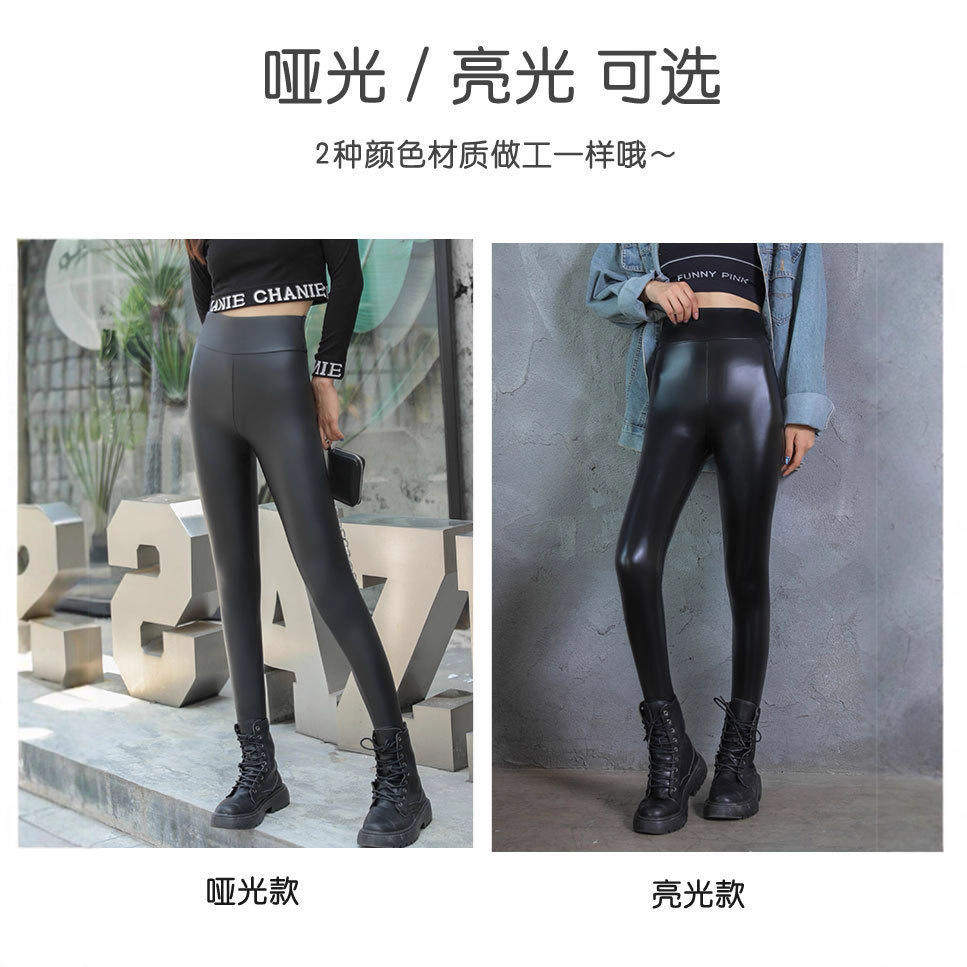 - 皮裤女加绒 高腰 冬季 亚光黑色