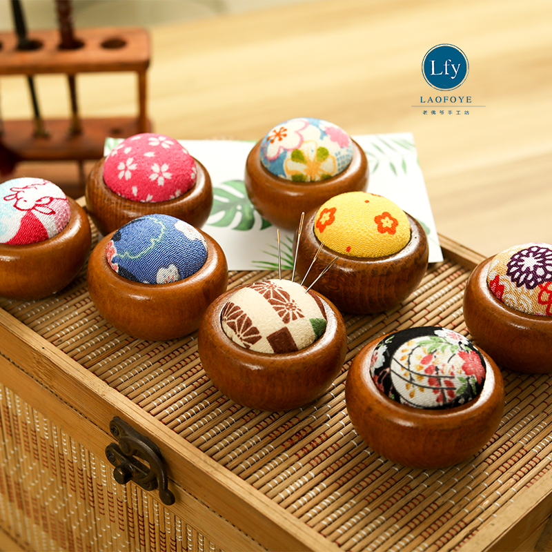 老佛爷 可爱5.5cm迷你针插包 实木底座针插缝纫DIY工具和风针插垫