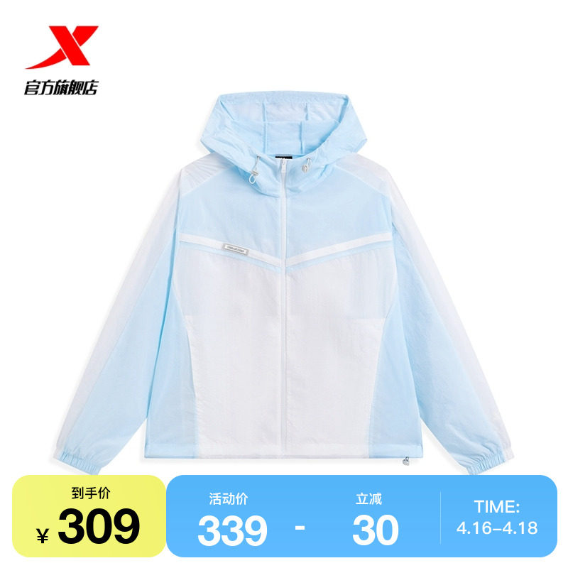 特步风衣女2024夏季新款潮流薄款校园风梭织连帽外套976228140215