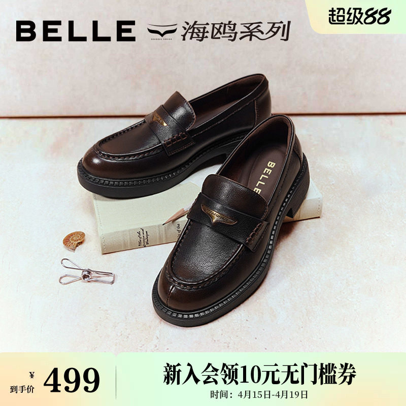 周雨彤同款百丽海鸥乐福鞋女2.0厚底增高真皮英伦皮单鞋子B5J1D预