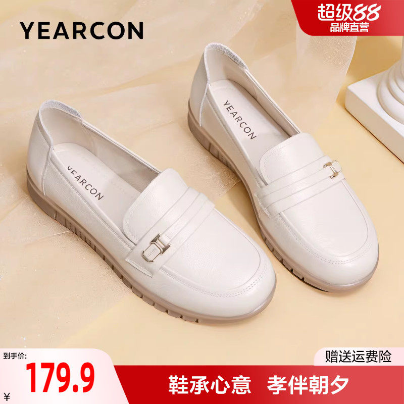 意尔康妈妈鞋春真皮宽脚舒适不累脚软底豆豆单鞋大码皮鞋乐福鞋女