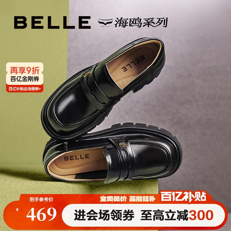 百丽海鸥乐福鞋女新款黑色小皮鞋厚底增高真皮深口单鞋子A5W1DCA4