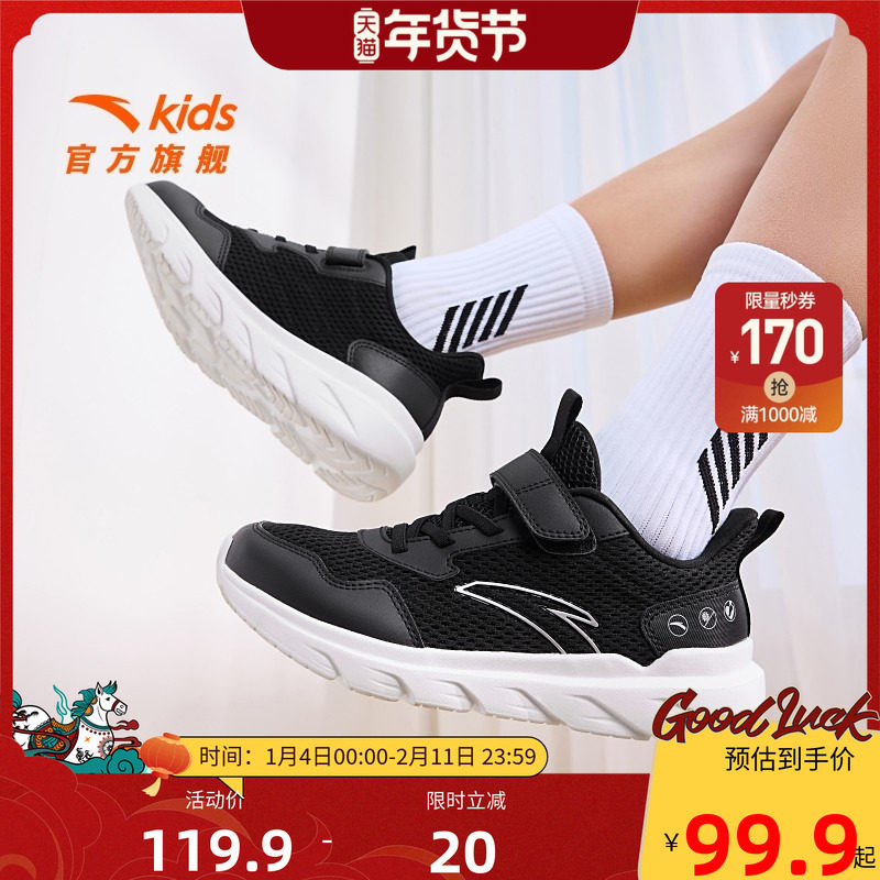 毒刺安踏儿童跑步鞋2025秋冬新款男童网面专业跑鞋休闲黑色运动鞋