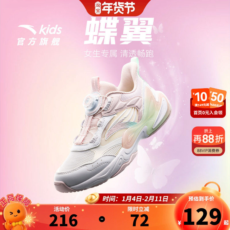 安踏童鞋女童运动鞋蝶翼跑鞋2026夏季新款大童跑步鞋透气鞋子网面