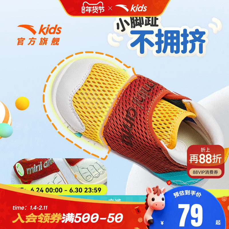 安踏儿童运动学步鞋女婴童宝宝跑鞋2025春夏网面透气幼儿园凉鞋