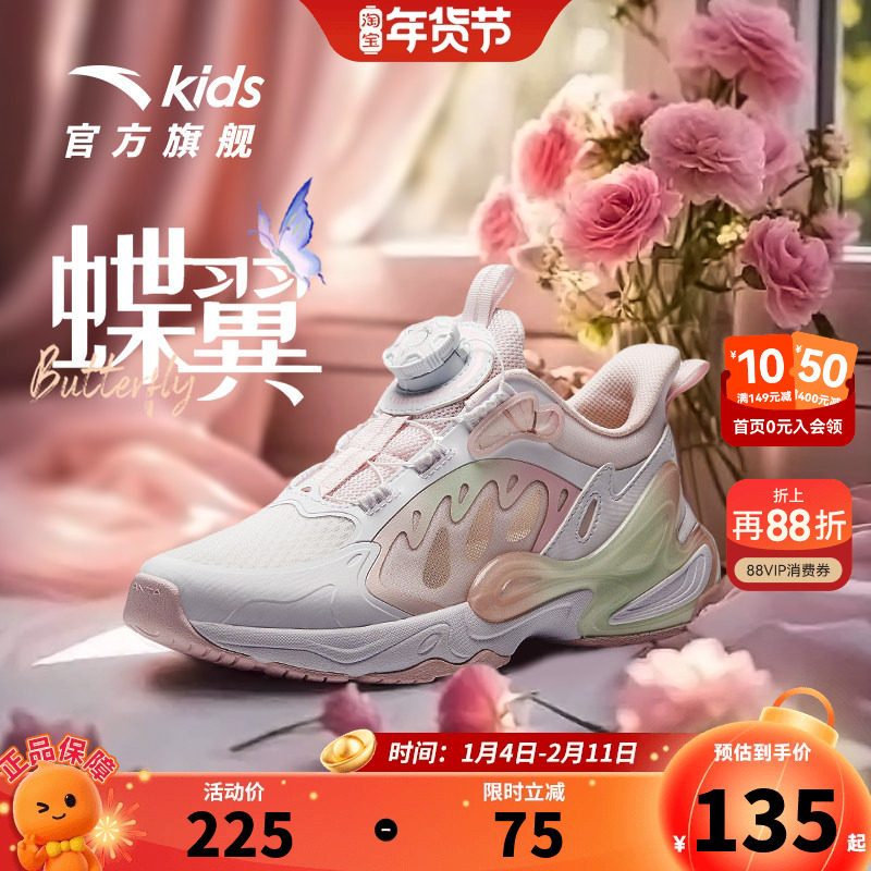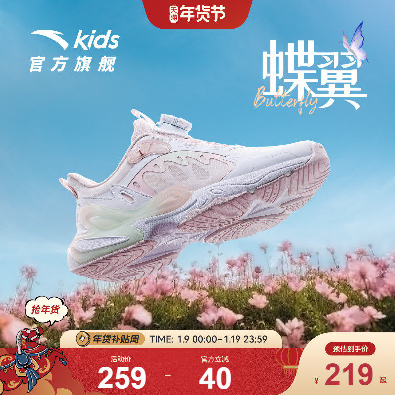 安踏儿童鞋蝶翼女童运动鞋2025秋季新款童鞋网面犟弹女大童休闲鞋