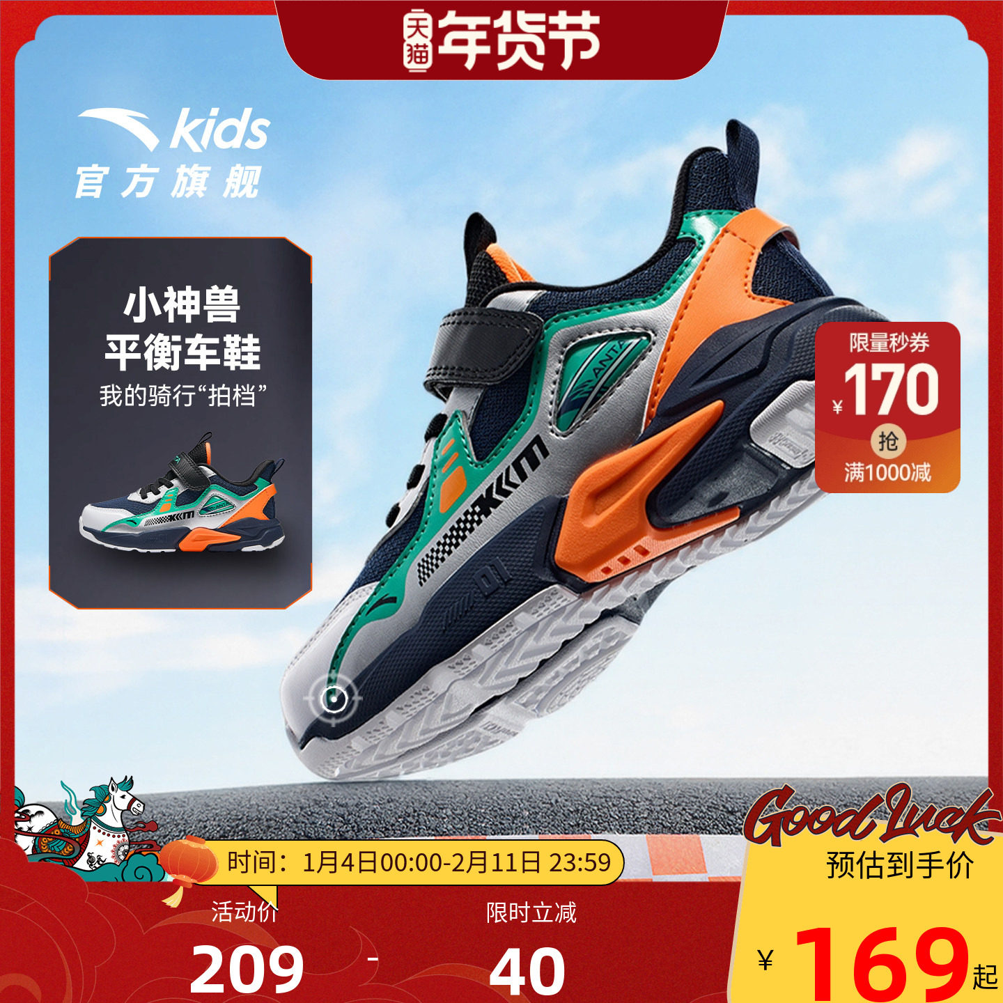 安踏儿童运动鞋男童耐磨跑步鞋2025秋冬新款网面魔术贴平衡车鞋子