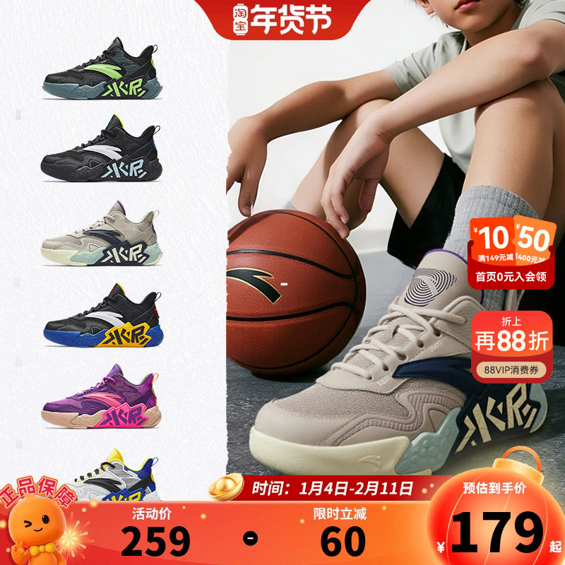 安踏儿童篮球鞋男大童2025冬季水泥专业球鞋耐磨春季密网面运动鞋