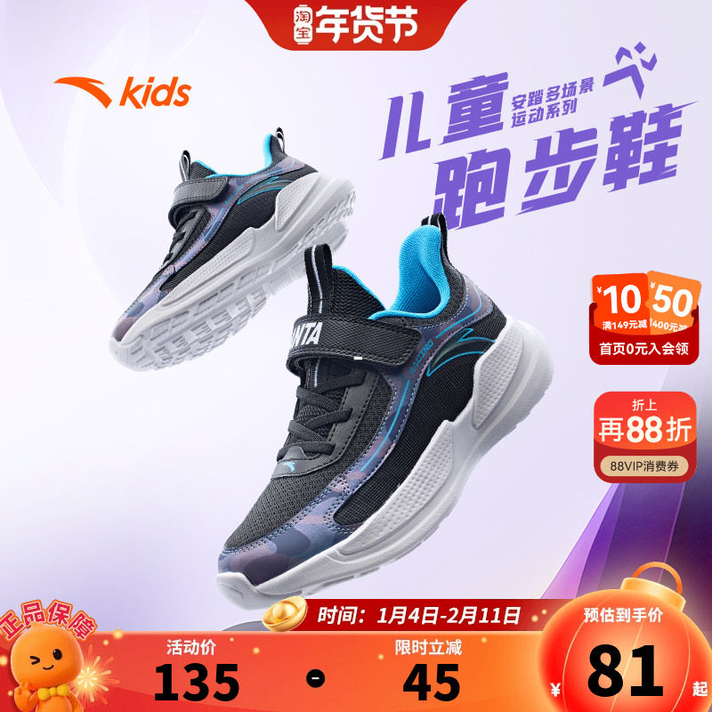 安踏儿童鞋男童元气跑步鞋2026年秋冬加绒抗菌中大童网面运动鞋子