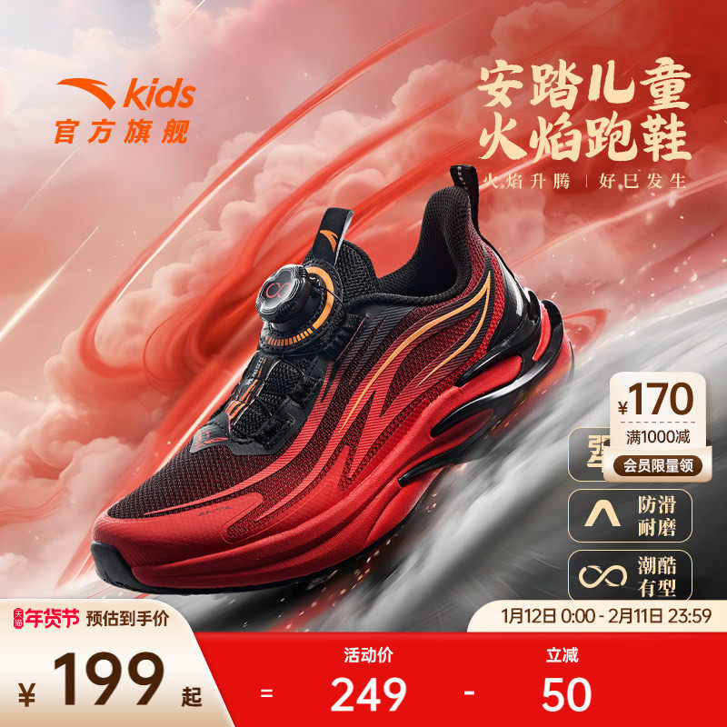 安踏赤焰丨安踏儿童运动鞋男童防滑2025冬季男大童跑鞋网面纽扣鞋
