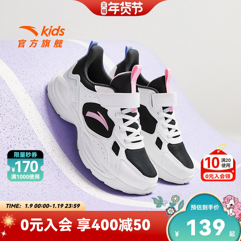 安踏儿童鞋女童运动鞋2026春季新款网面透气大童跑步鞋易弯折鞋