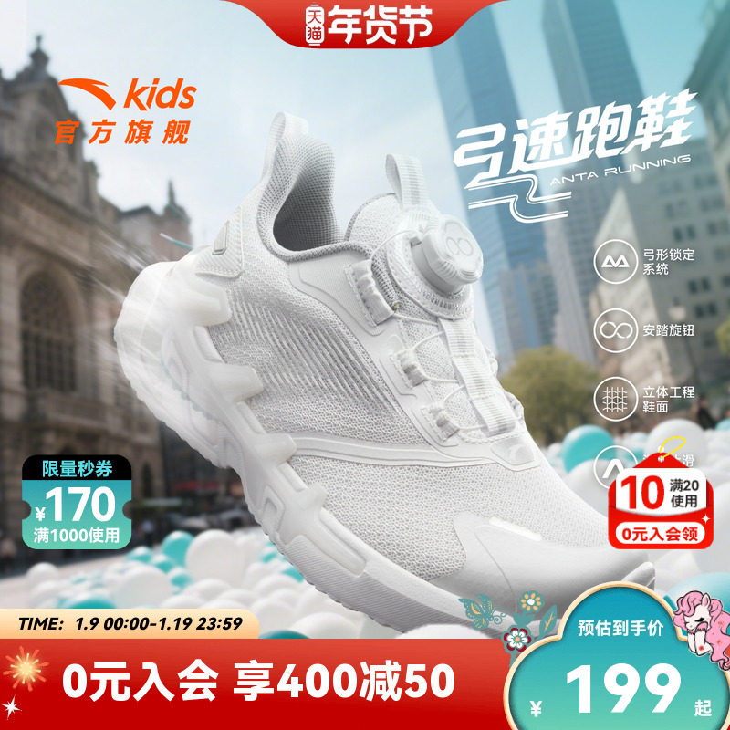安踏儿童鹰爪跑鞋丨男大童运动鞋冬季旋钮透气软底减震网面休闲鞋