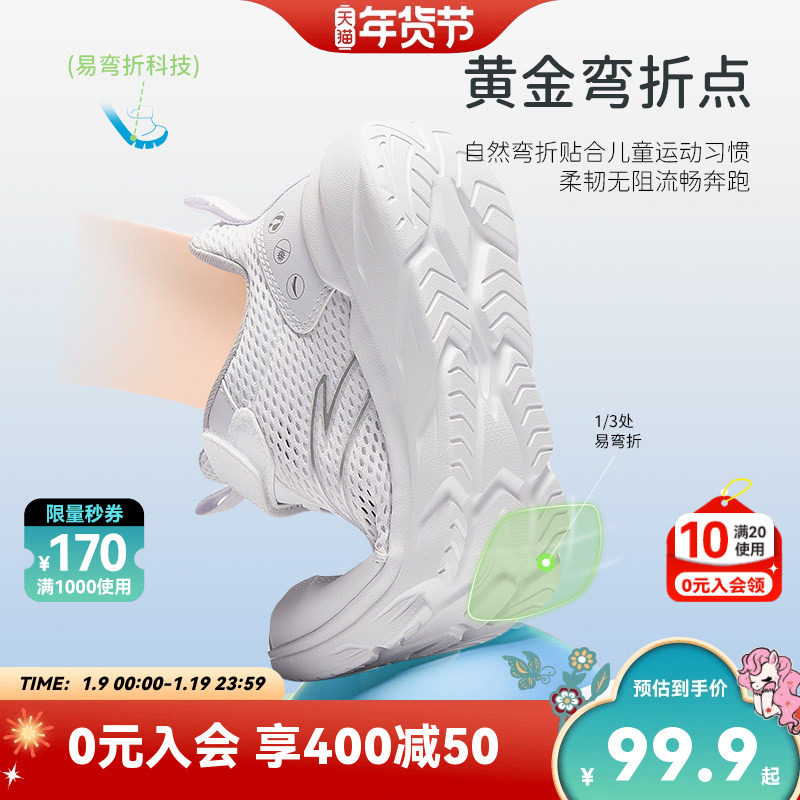 安踏儿童小白鞋男童女童元气跑步鞋2025新款透气网面鞋抗菌运动鞋