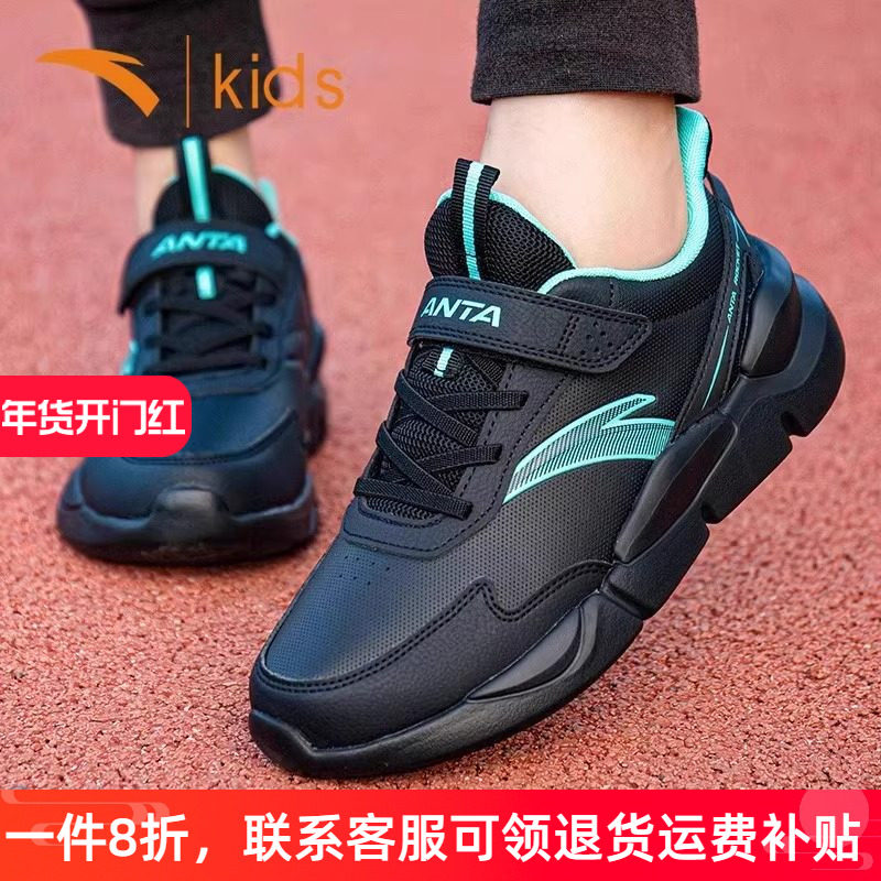 安踏男童运动鞋皮面防水儿童跑步鞋2025冬季网面魔术贴中大童鞋子