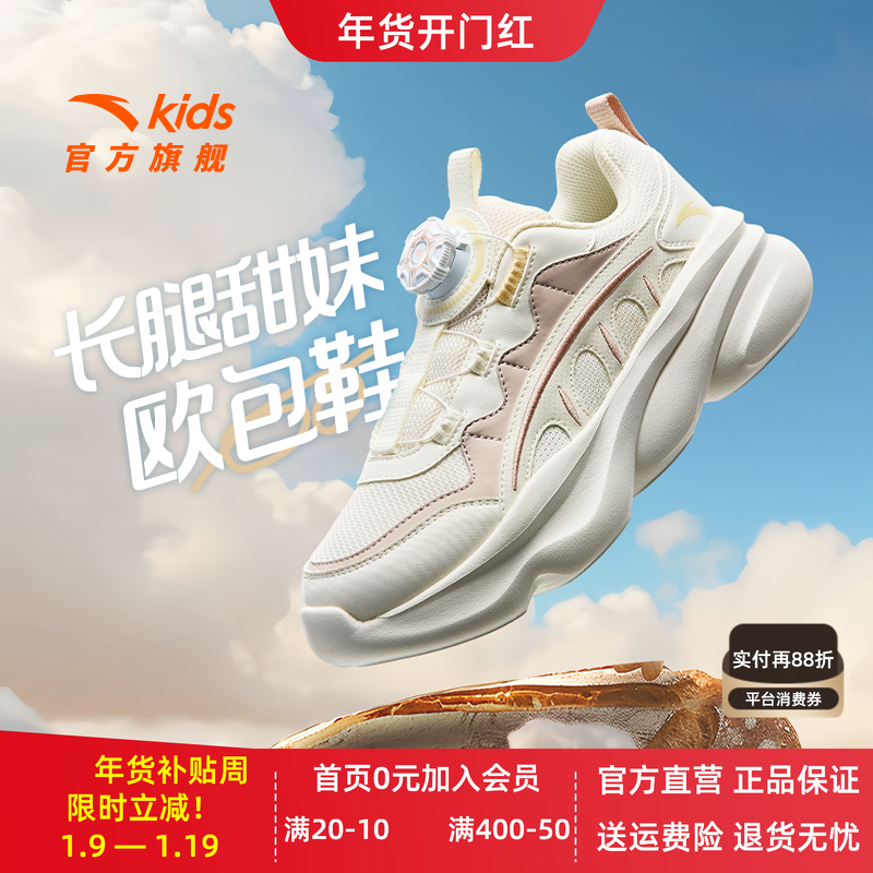 安踏儿童女童老爹鞋2025秋冬季新款欧包白色休闲鞋网面运动鞋跑鞋
